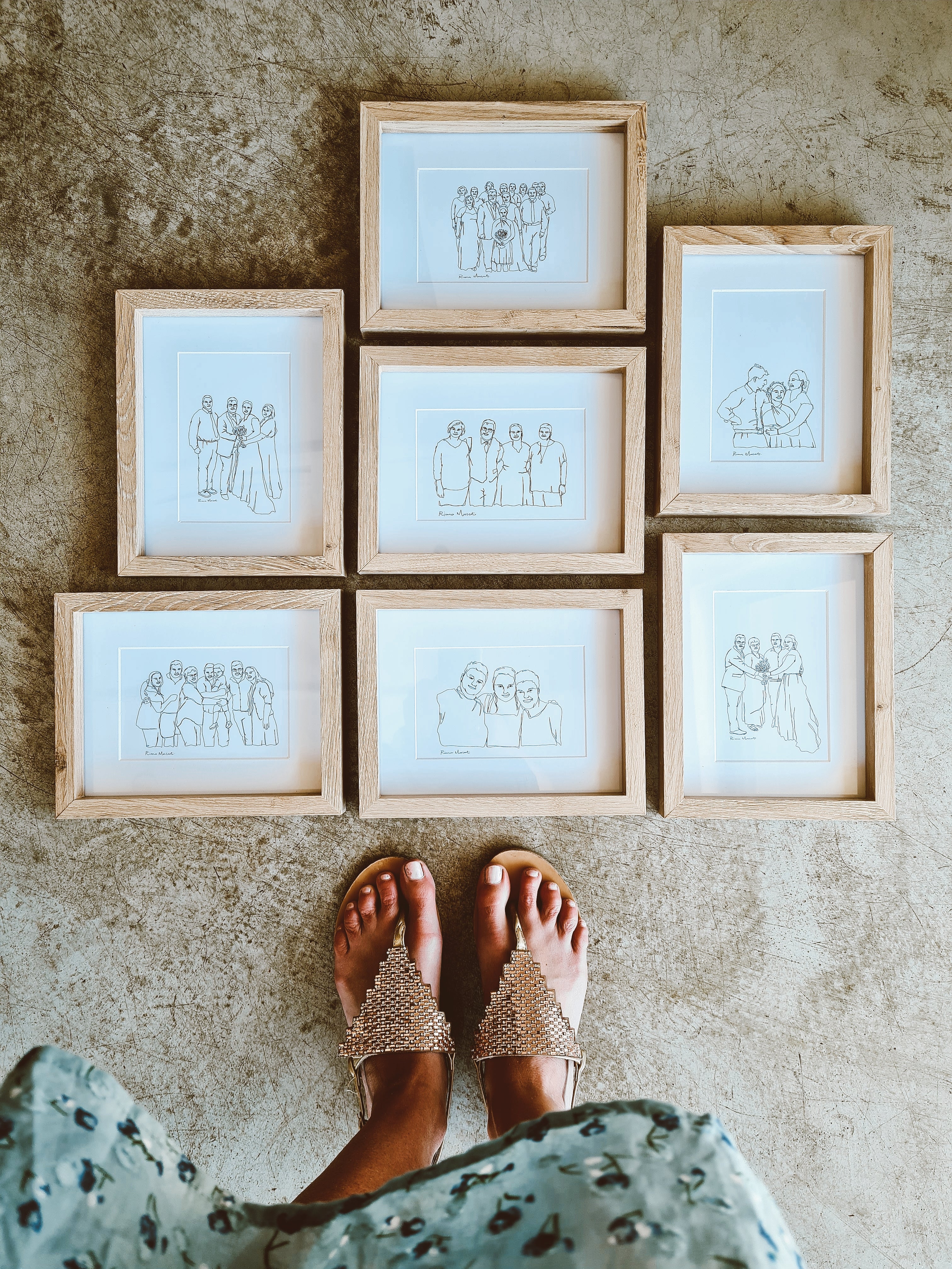 A moment in time; a special memory captured forever and framed. Using her unique talent Riana will illustrate your memory in a continuous line drawing.